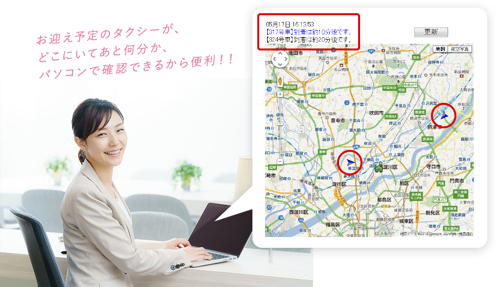 - お迎えに向かっているタクシーが、今どこにいるかパソコンで確認が出来ます。